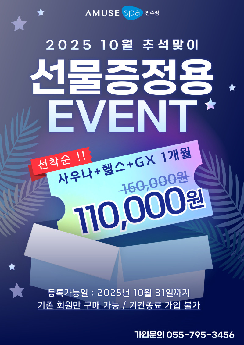 - 2025년 10월 추석맞이 신규회원권2개월 이벤트!