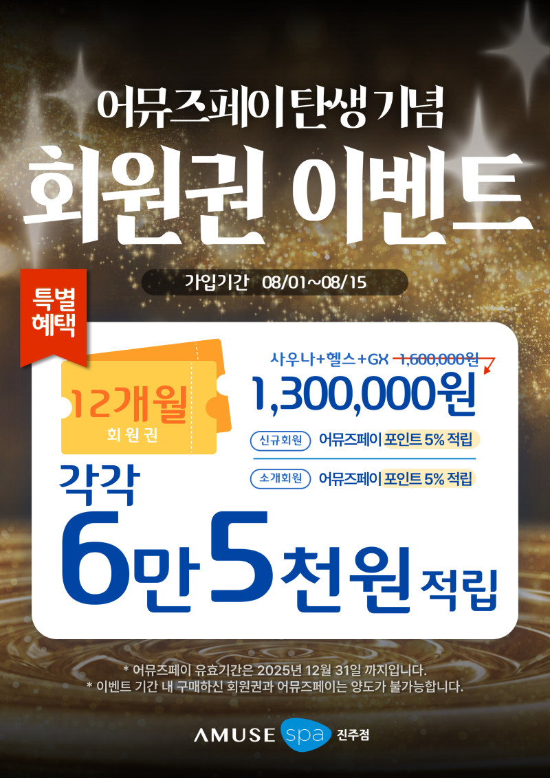 12개월회원권 30만원할인등록에 어뮤즈페이 적립까지?!