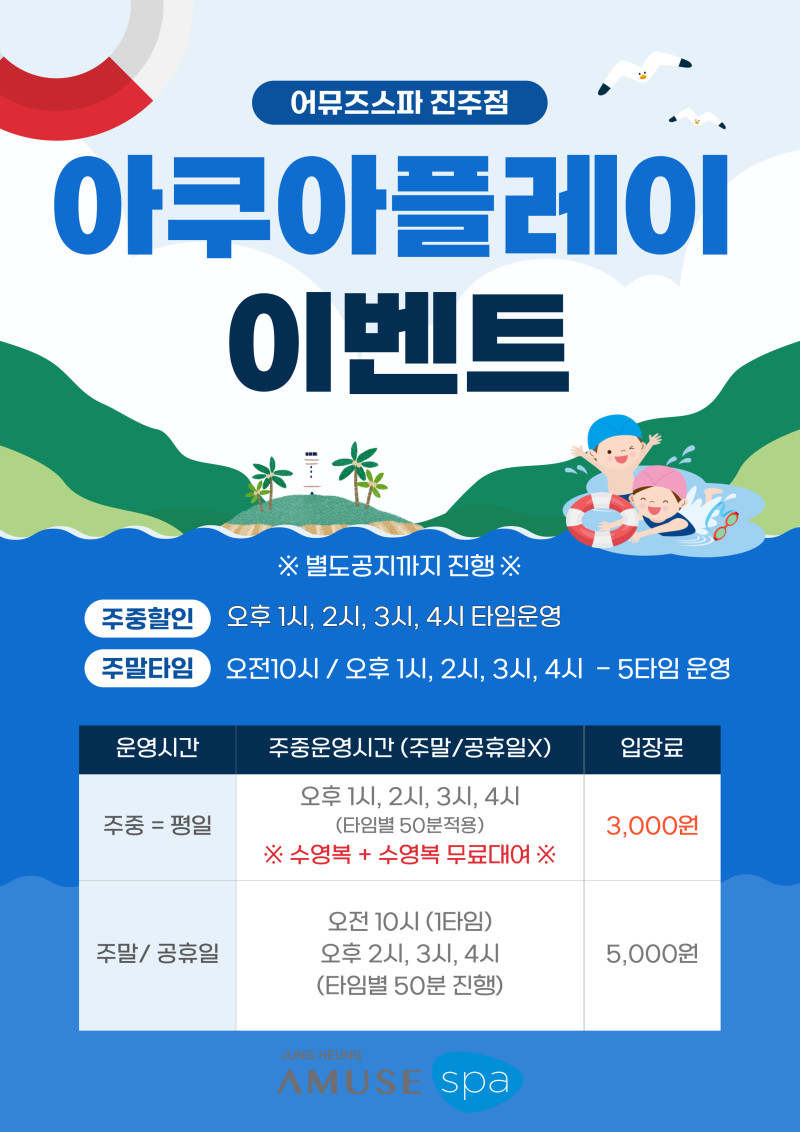 어뮤즈스파 진주점 아쿠아플렝이(미니워터파크) 할인행사