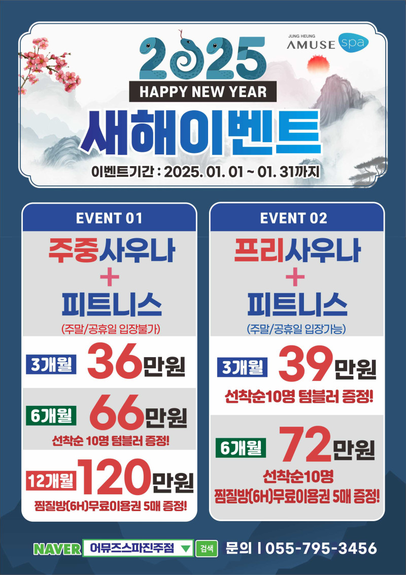 2025년의 새해 신년을 맞이하여 어뮤즈스파 진주점이