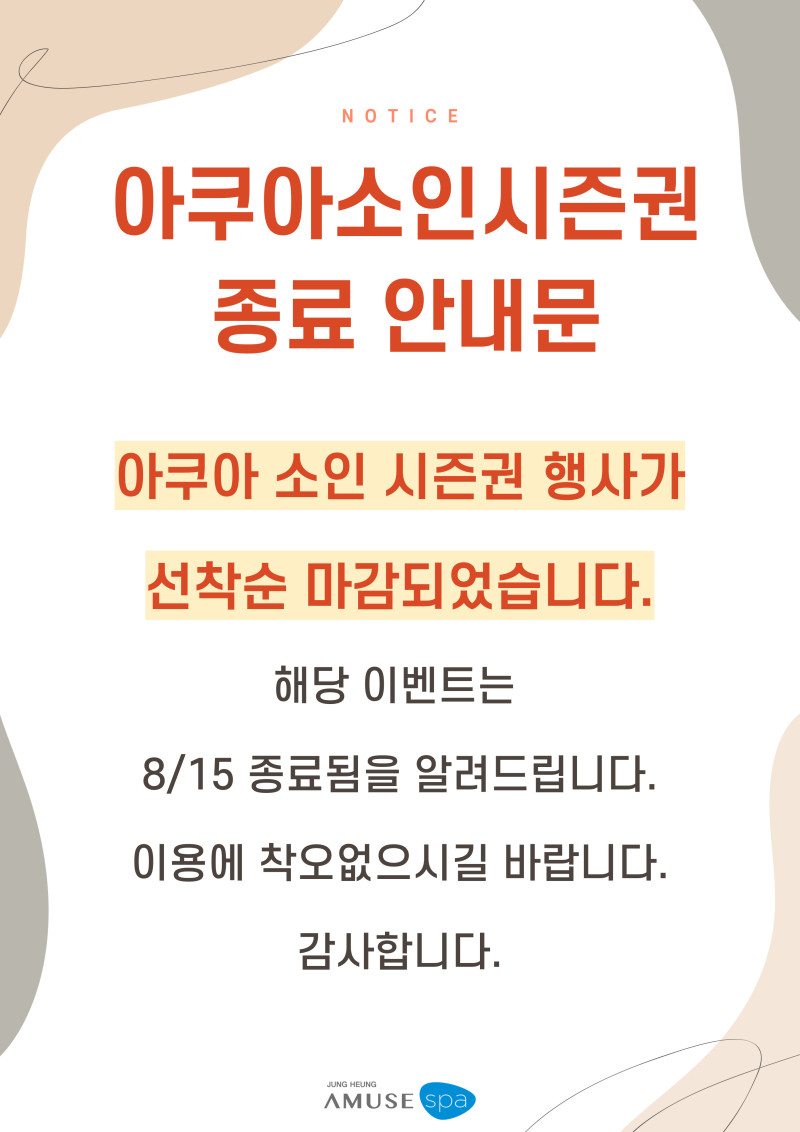 아쿠아 소인시즌권 종료 안내문