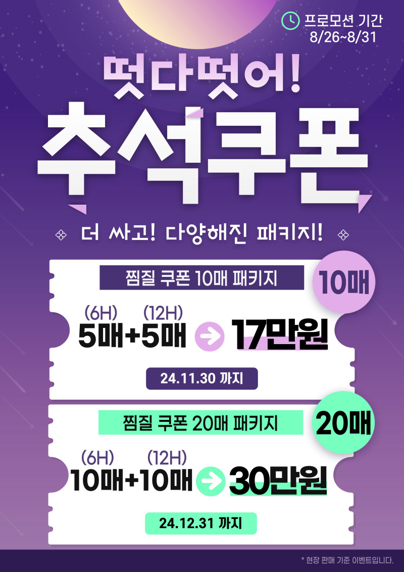 추석맞이 쿠폰이벤트 (사우나/찜질패키지) - 단 7일만!