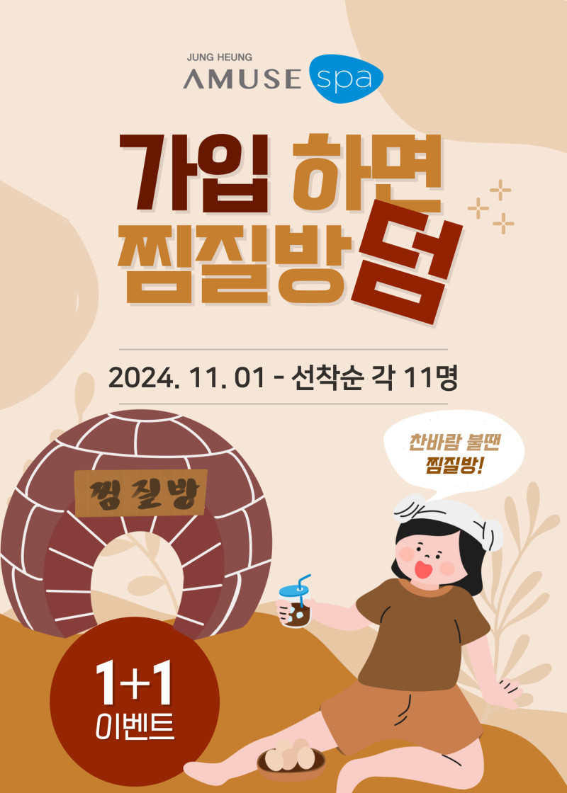 찜질방 이용까지 가능한 1+1 행사를 진행합니다.