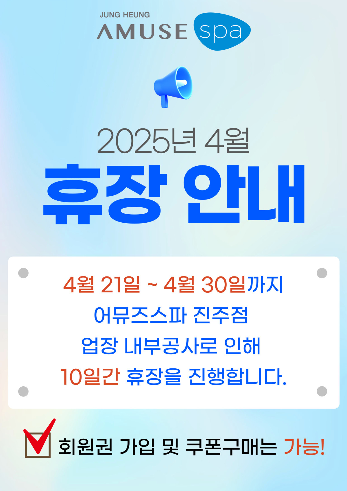 ★어뮤즈스파 진주점 4월 휴장일 안내★