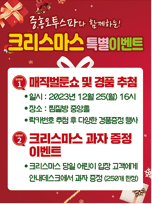 크리스마스 당일 매직벌륜쇼 및 경품추첨 이벤트