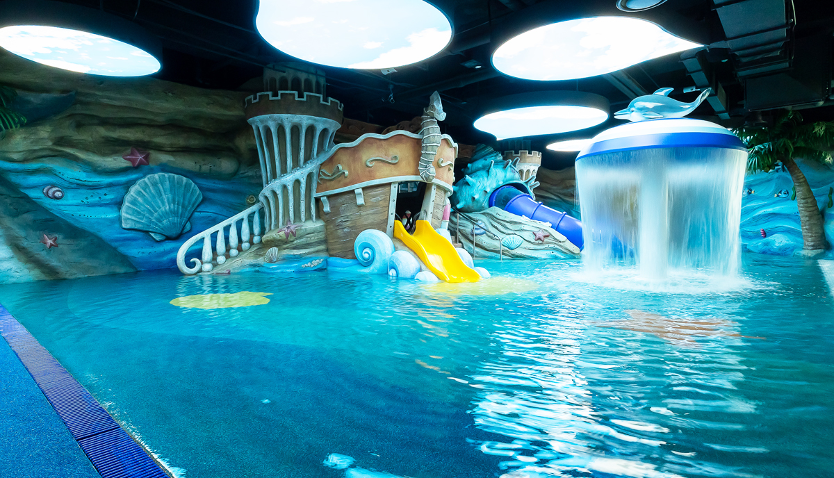 아쿠아플레이는 아이들이 마음 놓고 뛰어놀 수 있는 안전한 수심의 사계절 온수풀입니다